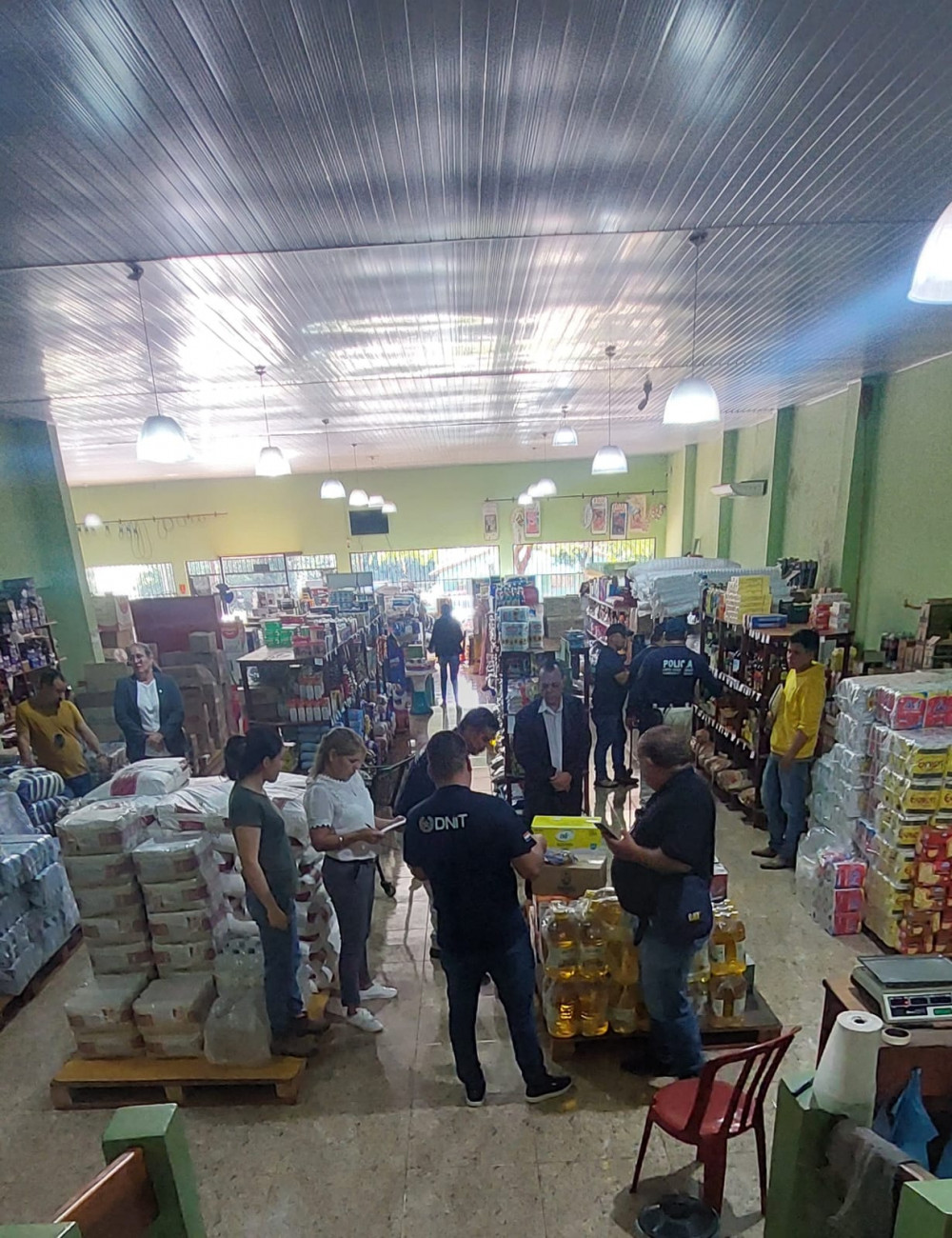 Durante el allanamiento, se incautaron vinos, azúcar, aceites, papas, cebollas, productos de limpieza y otros alimentos de varias marcas y procedencias. La acción estuvo coordinada por la Agente Fiscal en lo Penal de Turno, Abg. Walter Lugo, a partir de un mandato judicial emitido el 12/06/2024 por el Juez Penal de Garantías de Turno. El despliegue contó con la colaboración de funcionarios de la DNIT liderados por el Agente Especial Hugo Duarte.