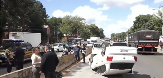 El vehículo que protagonizó el hecho volcó tras el impacto sobre el carril que conduce al centro de San Lorenzo. El conductor logró salir por sus propios medios y resultó ileso.