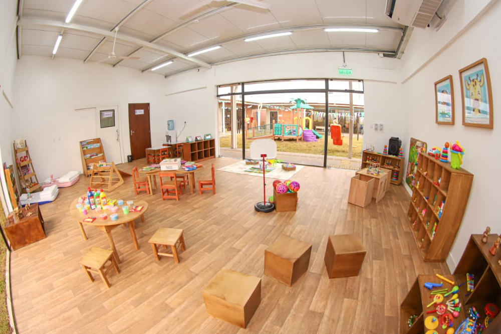 El centro se erige sobre un área verde recuperada de la antigua zona baja, en las inmediaciones del Nuevo Circuito Comercial y la Feria Municipal. Con una construcción de 850 metros cuadrados, las instalaciones están diseñadas para brindar atención de excelencia a un total de 120 niños y niñas.