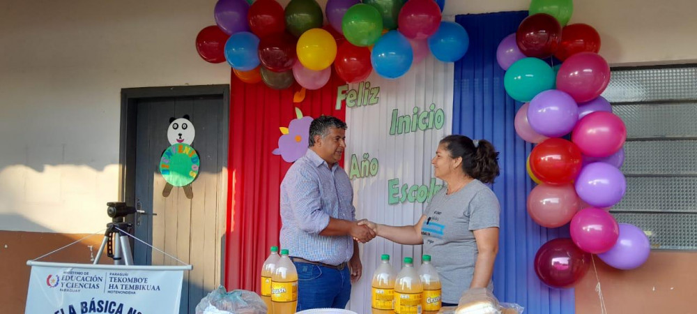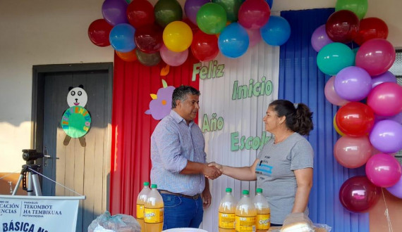 En el primer día de clases, Javier Morán, intendente de José Leandro Oviedo, se acercó a todas las escuelas de la localidad para compartir una agradable merienda con los estudiantes y maestros.