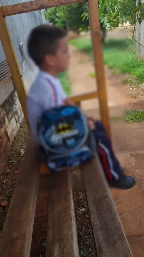 Más de dos horas esperó el pequeño en compañía de su mamá, pero el micro no pasó y tuvo que faltar a la escuela.