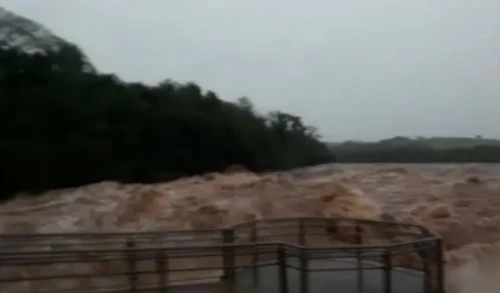 Las intensas lluvias registradas en la región provocaron que el volumen de agua aumente considerablemente y afecte el caudal del Parque Nacional de Iguazú, en Argentina.