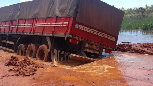 Unos 60 camiones de gran porte se encuentran varados desde hace 15 días en San Pedro, a causa del desborde de un arroyo como consecuencia de trabajos para la construcción de un puente. Piden asistencia y una rápida solución al Gobierno.